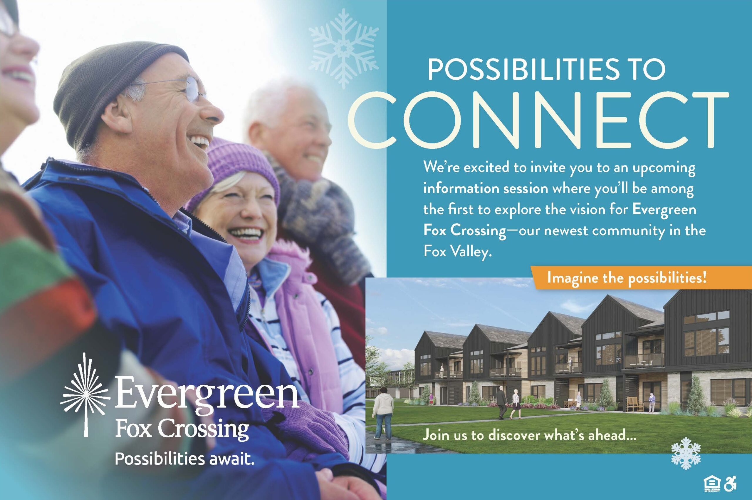 Possibilities Await. This is the way retirement should be. Planning your days as you wish. Exploring new opportunities. Enjoying your neighbors…and staying connected with lifelong friends. It’s more than just a lifestyle to envision for “someday.” It’s the lifestyle awaiting you right now at Evergreen.